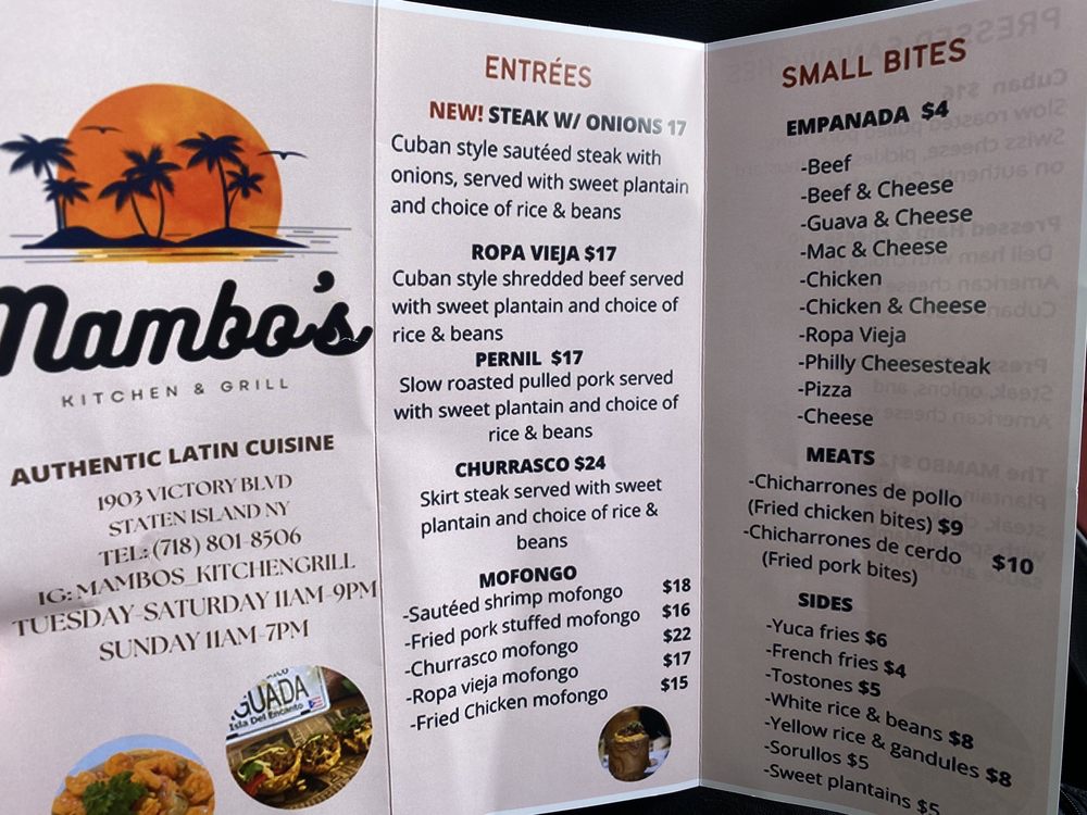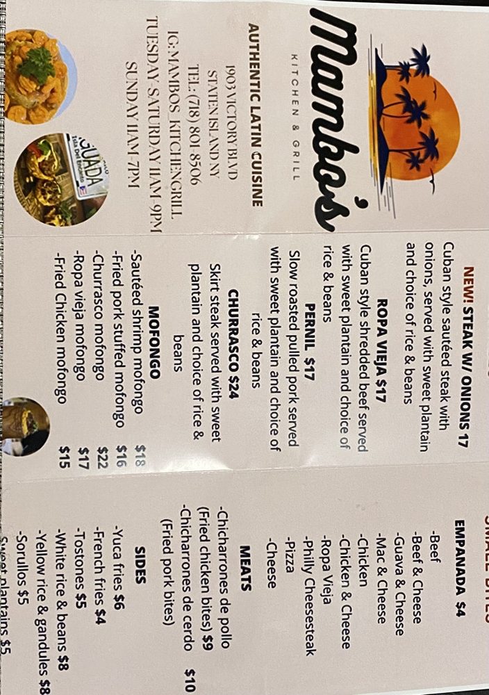 Welcome to Mambo's Kitchen & Grill, where the vibrant flavors of Latin America come alive on your plate. Nestled at 1903 Victory Blvd, Staten Island, this charming eatery specializes in authentic Puerto Rican and Cuban cuisine, offering a menu that celebrates the richness of these cultures.